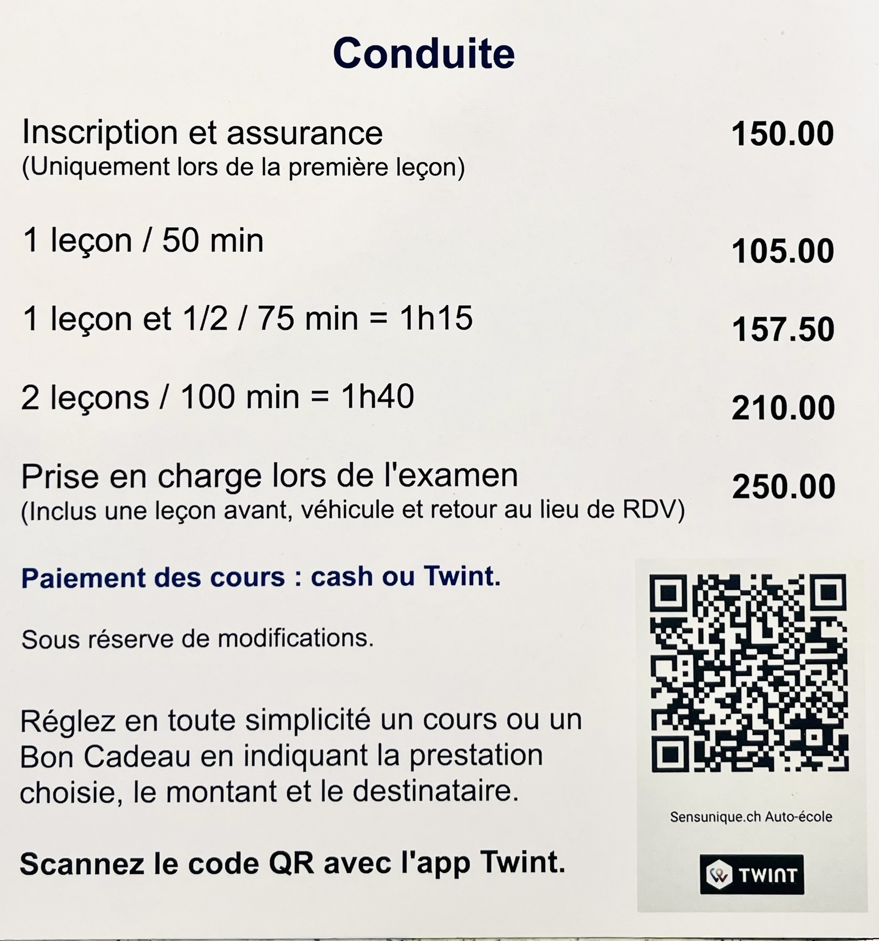 Vous pouvez régler par Cash, Twint au numéro indiqué ci-dessus ou avec le code QR ci-dessous ***