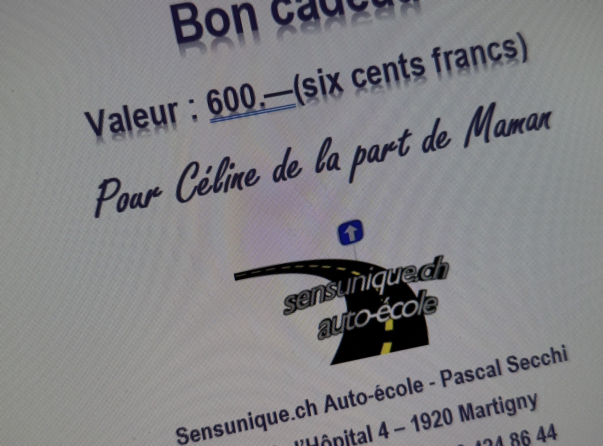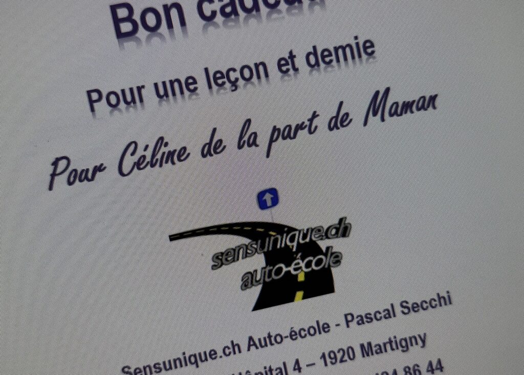 2. Je désire faire un bon cadeau de 350.- pour des prestations auprès de l’auto-école Sensunique.ch